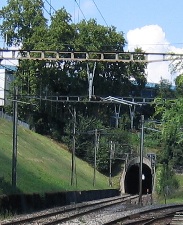 | Le tunnel ci-contre pourrait-il servir au trafic de voyageurs aussi? En page 39 du cahier 16-4 de 2011 des développements ferroviaires du Grand Genève figurent les aménagements requis pour une desserte Annemasse - Aéroport l'empruntant. |
